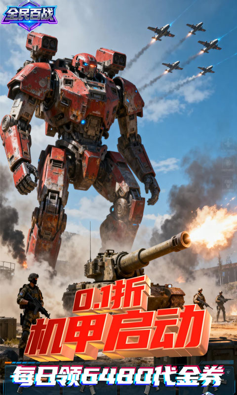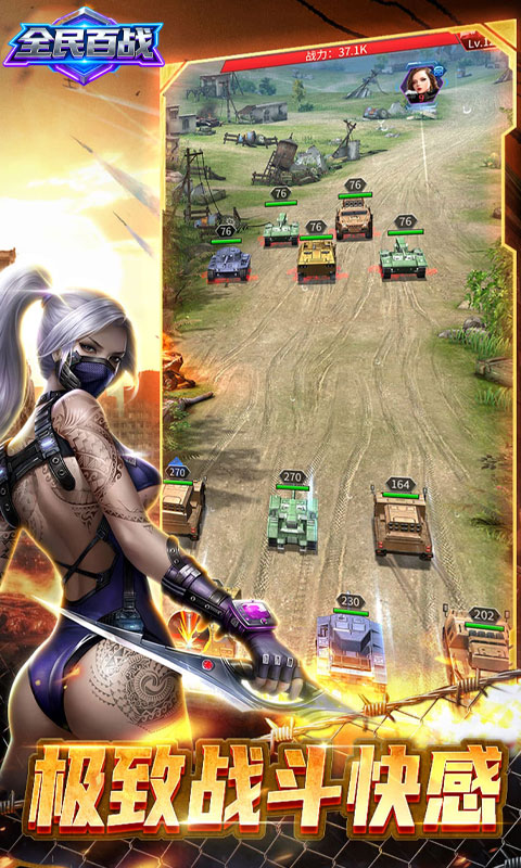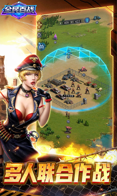 《全民百战》是一款以军事科技为主题的3D写实风格战争策略手游。由于晶能矿的发掘,地球科技实现了质的飞跃,却也引来了外星文明的入侵,地球陷入了一片废墟之中。作为人类领袖,你将扮演关键角色,亲自指挥和训练自己的队伍;通过在虚拟而真实的战场上自由部署兵力,探索最适合自己进攻或防守的战术。游戏中有数百种不同的战争武器等你研发和获取,每种武器的发展方向都不同,你需要带领他们参与惊险刺激的战斗,为了人类的未来而奋斗!
