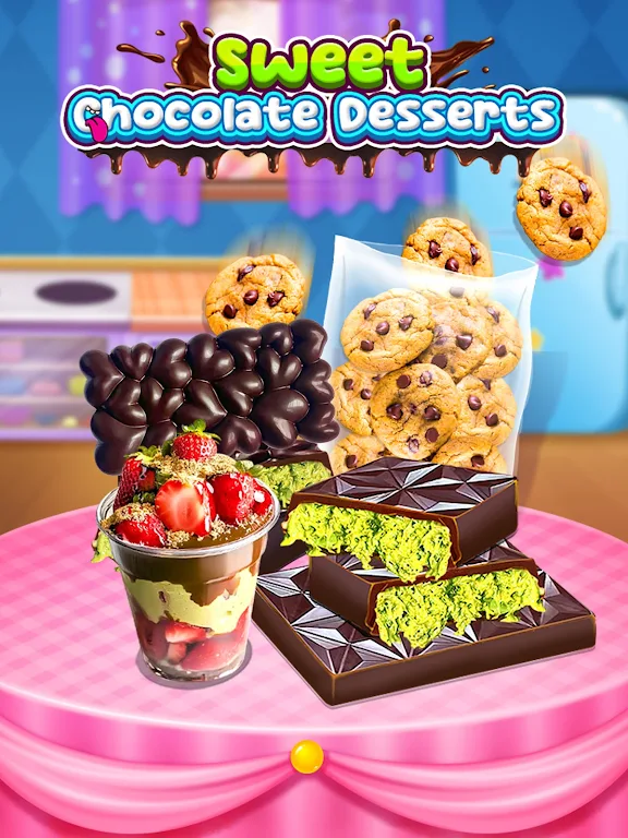 在甜巧克力甜点的游戏中,您将沉浸在一个充满令人垂涎欲滴的巧克力曲奇和迪拜巧克力棒的奇妙世界。这个游戏为巧克力爱好者提供了无限的创意空间,让玩家在虚拟厨房中尽情发挥。