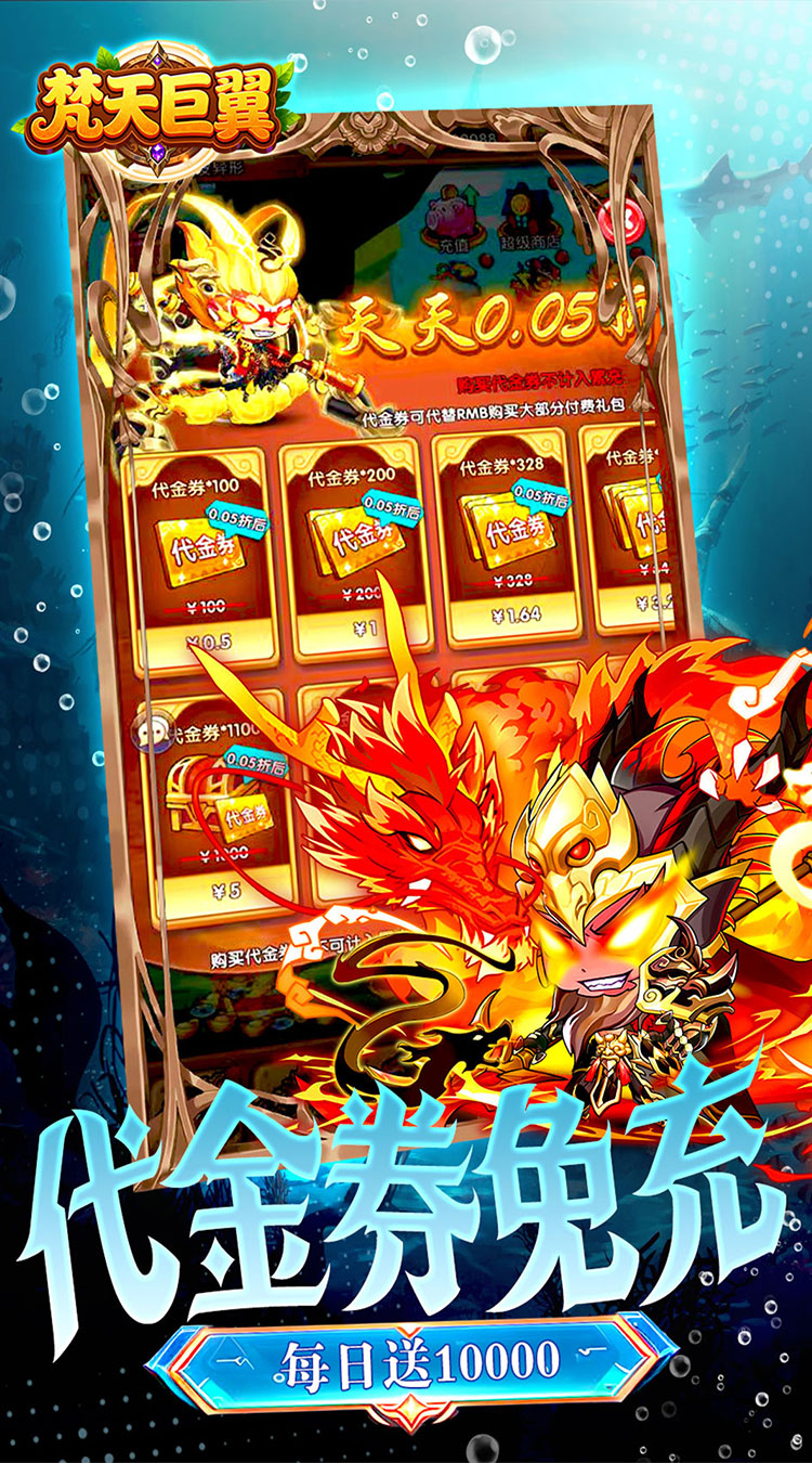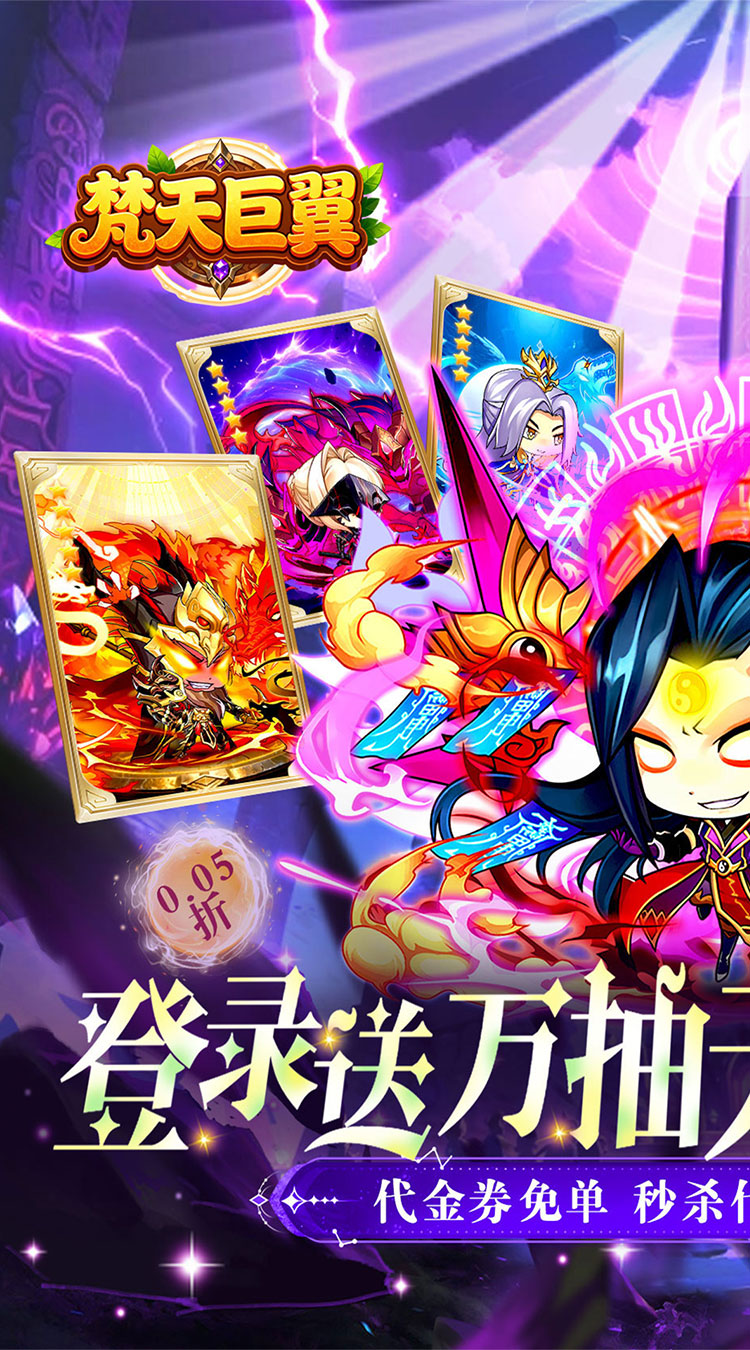 《梵天巨翼》是一款Q版国风题材的卡牌+塔防回合制游戏。你将化身主公,带领英雄们征战天下!烧脑策略秀操作,每个武将也都各具特色,趣味的玩法,休闲的画风,简单的操作,原创“满屏技能释放”,带来燃尽十足的战斗快感,每日福利拉满,永久0.05折,天天送10000代金券,让战斗在你的指尖生动重现。