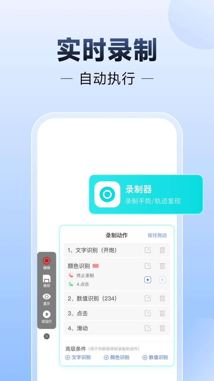 自动连点器的录制功能,使用户能够将自己在屏幕上的点击、滑动等动作记录下来,并保存为可以随时使用的方案。通过这一功能,用户可以轻松回放之前的操作,避免重复的手动输入。同时,智能录制功能还引入了高级条件判断机制,用户在录制过程中可以设置逻辑判断,从而实现复杂需求的自动化处理。比如,在游戏中,用户可以设定特定条件下的操作,以便在特定情况触发时自动进行相应的点击和滑动。