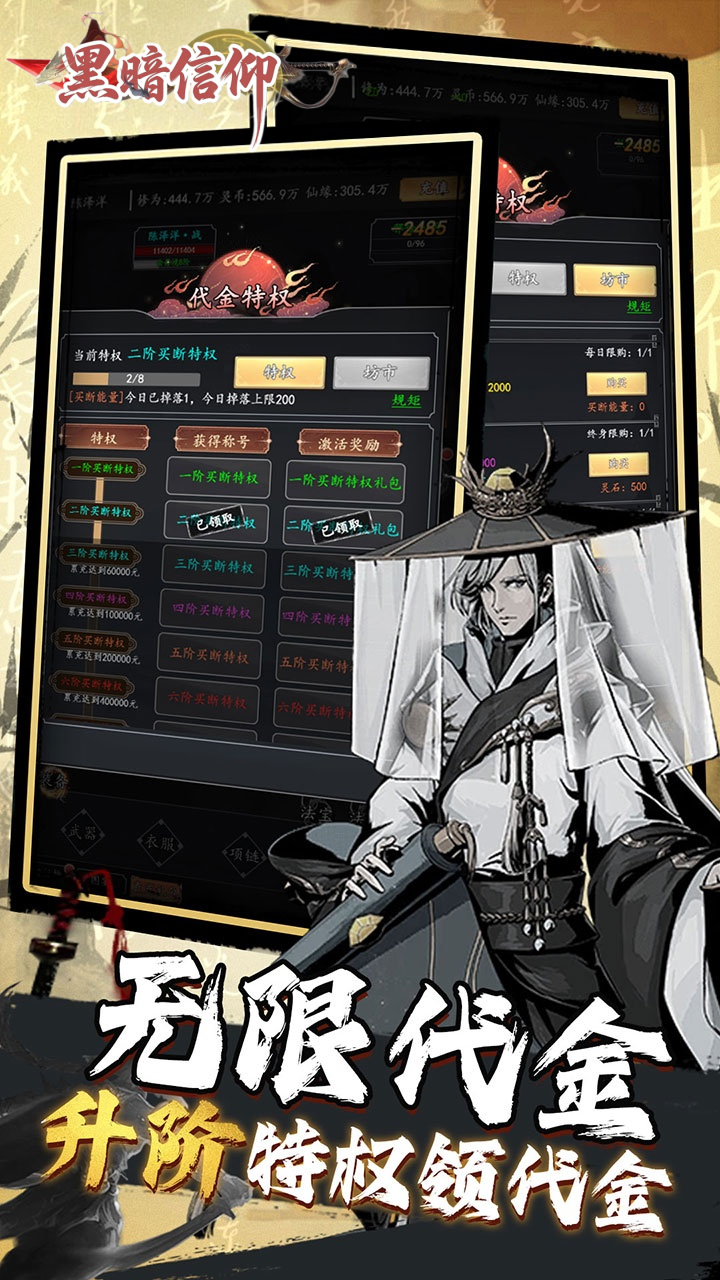 《黑暗信仰(0.05折修真买断)》是一款文字修仙游戏,我欲成仙,渡劫飞升。全场0.05折!!开宗立派结识各路道友,沉浸式修仙,凡人逆天命。放置成长,完成任务即可领奖,每日登录惊喜不断,各种稀有材料,等你畅游修真界。在奇异修真世界,浩瀚星空,无尽苍穹,斩妖除魔,炼丹炼器,法宝神器等你都可以一一体验,构建千万修真小说迷修真梦,渡劫踏仙门,追逐修真长生之旅。