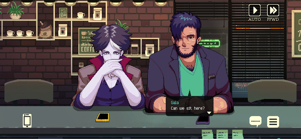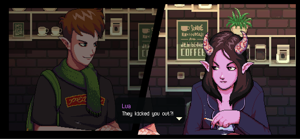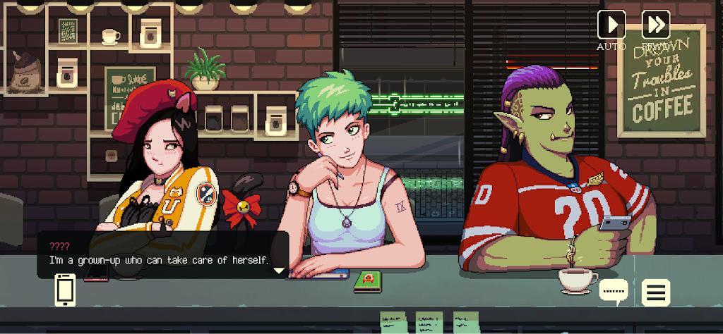 咖啡闲聊中的人物设计充满人性与多样性。来自不同背景的角色们,每个人都有自己的烦恼和成长困境。从一对经历爱情考验的精灵与魅魔情侣,到试图融入人类生活却屡遭误解的外星访客,再到面对孤独与自我怀疑的普通居民,他们的故事环环相扣,彼此交织。每个角色的互动不仅展现了独特的个性魅力,也反映了现代社会中多种现实问题,如身份认同、情感依赖、文化差异及自我接纳。游戏以细腻的笔触让玩家感受到这些情感的丰富层次和复杂性。