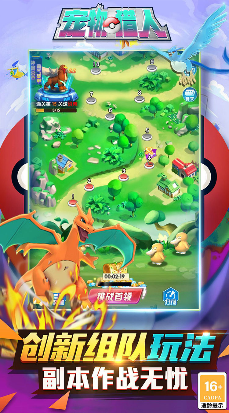 《宠物猎人(0.05折送超强SSS)》是一款精灵放置挂机卡牌手游!拒绝爆肝,欧气召唤!策略战斗,享受放置乐趣,丰富的阵法搭配,构建你的专属阵容,梦之宇宙,神兽对决等独具特色的副本玩法获取大量奖励,王冠神殿引发神兽共鸣增强属性,天王争霸等多种精灵竞技场,击败强敌赢取属于你的冠军天王!快派出你的宠物小队开启冒险之旅吧!
