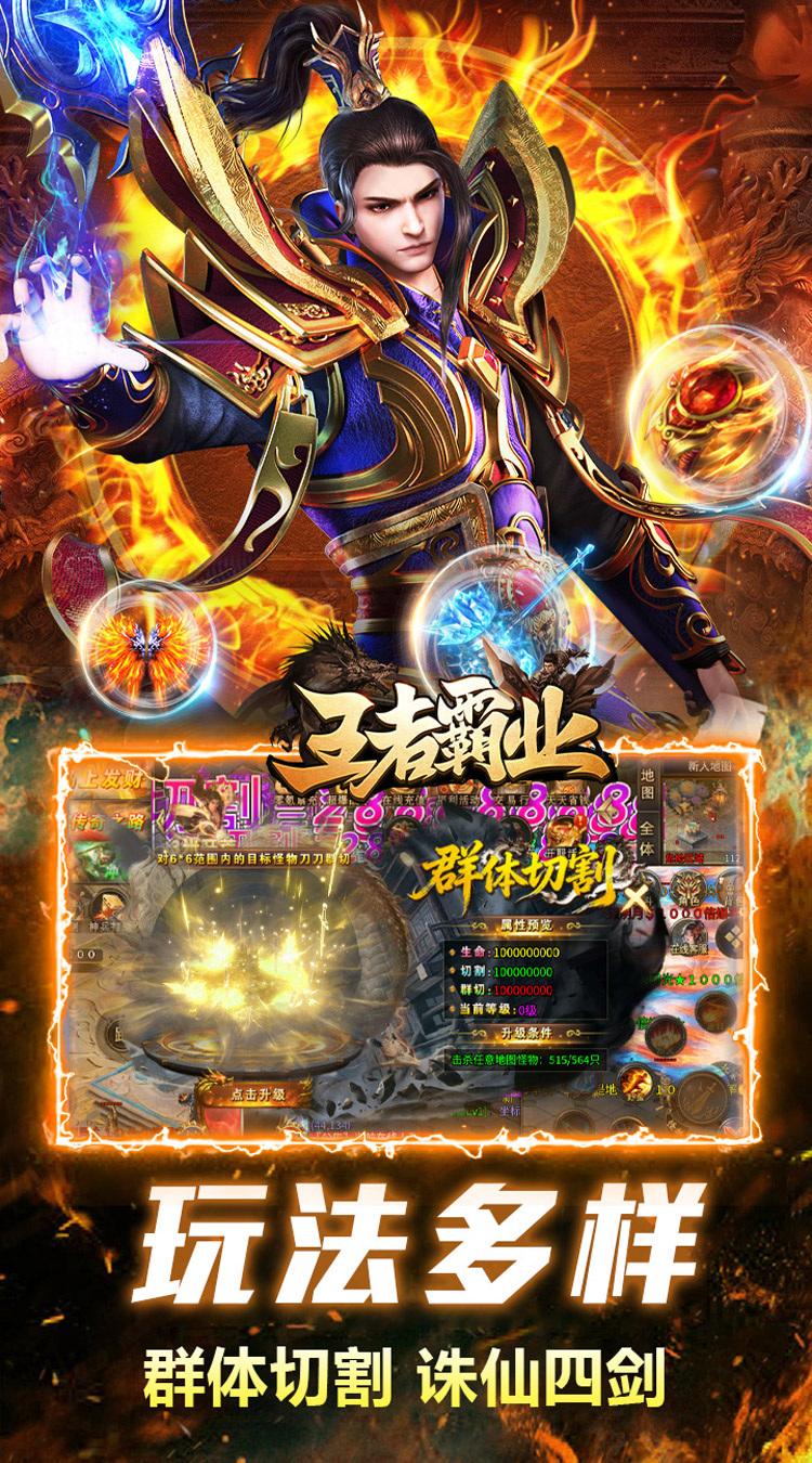 《王者霸业(刀刀爆爆爽)》是一款1.80超变版本传奇手游,热血重燃,散人也能轻松追梦!游戏主打刀刀飘血爆爽的战斗体验,群体切割炫酷技能带来极致视觉冲击。特色诛仙四剑让刷怪效率倍增,满足击杀怪物数量即可领取海量货币奖励,实现“马上发财”的梦想!快来加入,再战超变,体验原汁原味的传奇激情!
