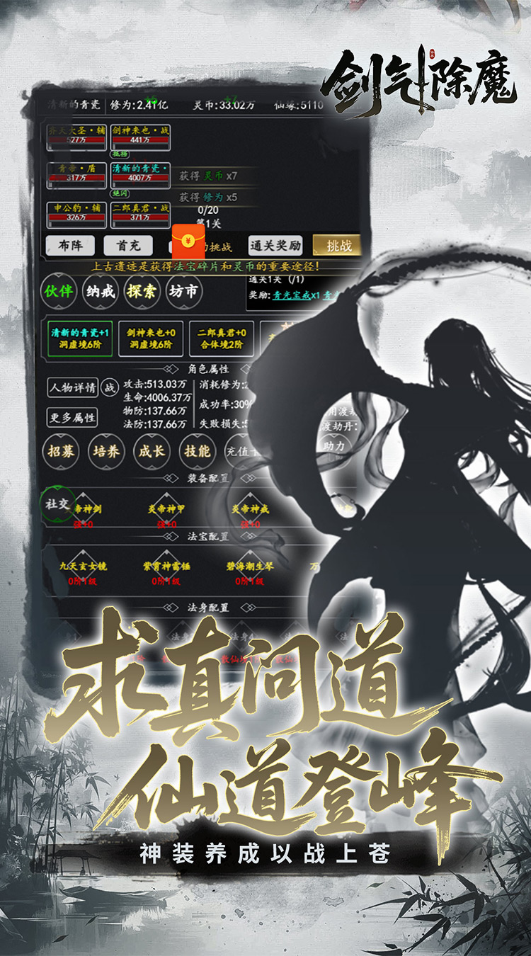 《剑气除魔(0.1折官方盲盒版)》是一款文字修仙游戏,0.1 折神壕修仙!全新官方版本!穿越到了仙气缥缈的修仙世界!开宗立派结识各路道友,沉浸式修仙,凡人逆天命。放置成长,完成任务即可领奖,每日登录惊喜不断,各种稀有材料,等你畅游修真界。在奇异修真世界,浩瀚星空,无尽苍穹,斩妖除魔,炼丹炼器,法宝神器等你体验,渡劫踏仙门,追逐修真长生之旅。横扫三界,做最爽的位面修仙者!