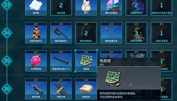 1、电路板是后期制作各种电力道具的材料,玩家首先需要将自己的科技等级提升至35级解锁这个科技。