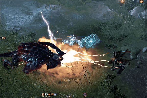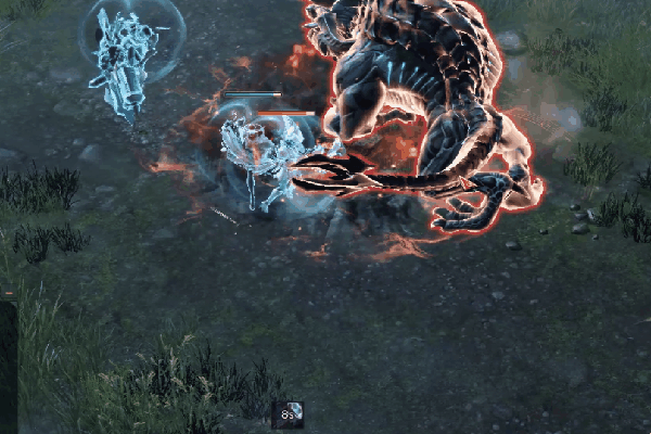 BOSS聚集能量在身后产生爆炸,技能伤害不高但是击中后会给玩家附加【黑暗状态】debuff。