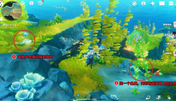5、吸收异色猎刀鳐的能力后斩断海草。