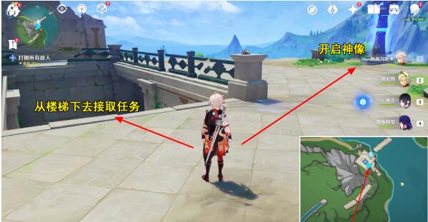 1、玩家需要前往枫丹廷北边传送点开启神像然后接取任务。