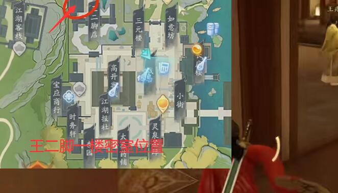 2、随后带着钥匙前往王二脚店的如下图所示的位置开启宝箱即可获得。