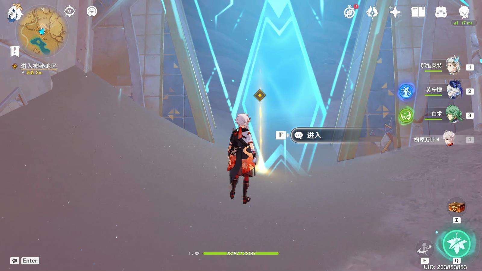 交互“进入”,直接进入秘境,秘境内无宝箱
