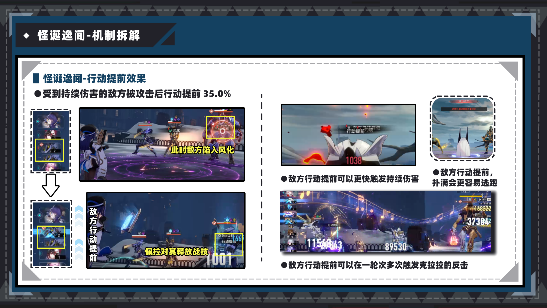 ▋怪诞逸闻:主要是为了立好以持续伤害为主要输出手段的角色;持续伤害是我方角色挂在敌方头上的一种负面效果,在敌方行动时会触发对其造成一定伤害,这样来看敌方动的快,持续伤害触发频率就快,因此对于DOT队而言基本上为正提升;