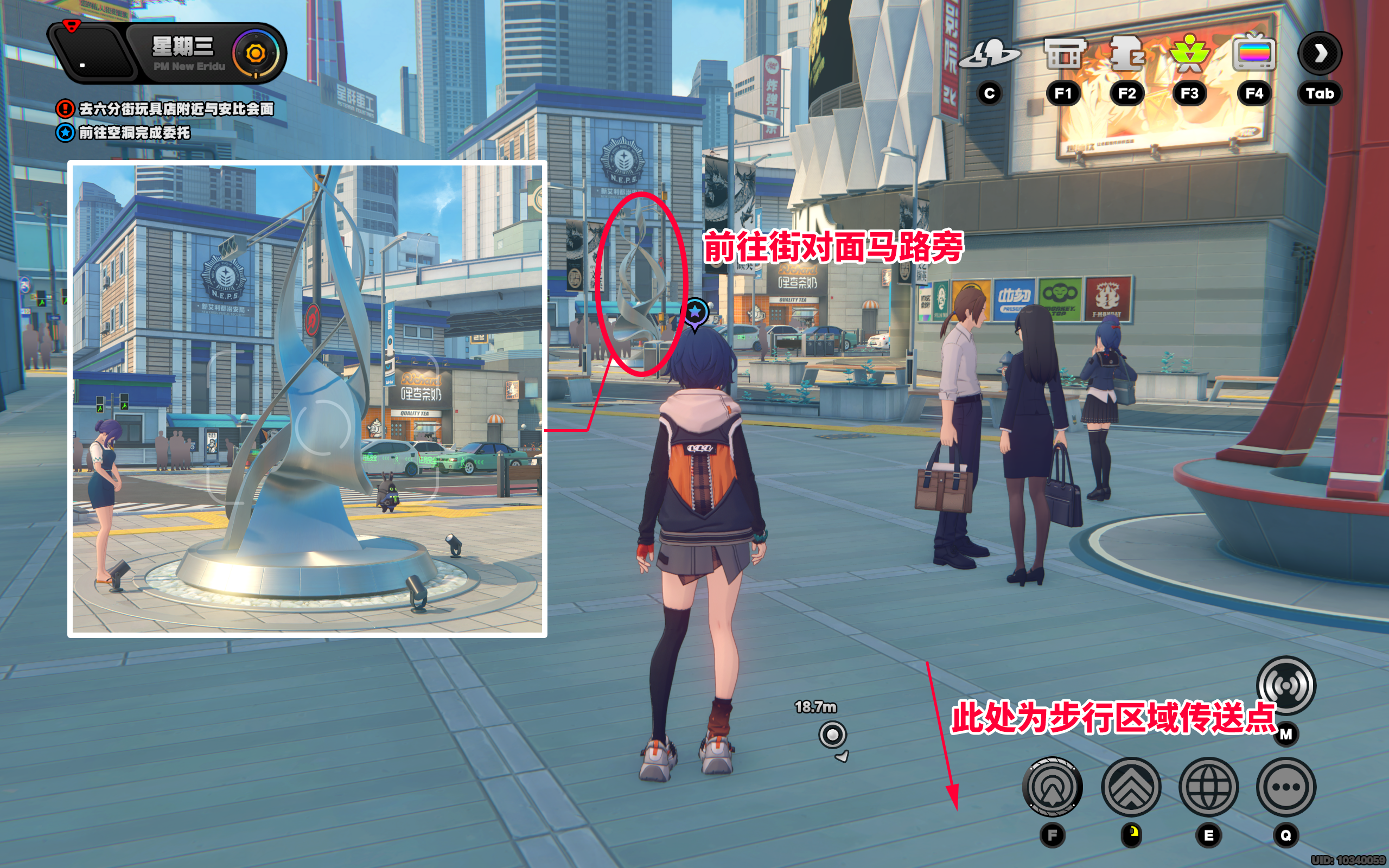 传送至「步行区域」,在对面有一个银色的奇怪建筑,近距离对它拍照即可
