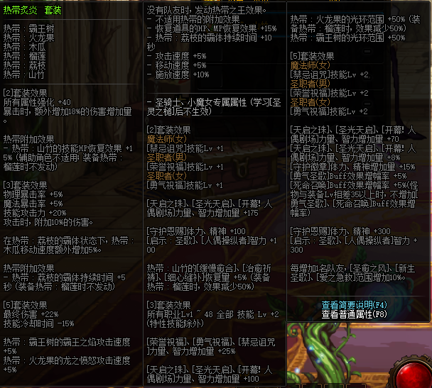 DNF热带炙炎属性怎么样-100热带炙炎套装属性提升一览