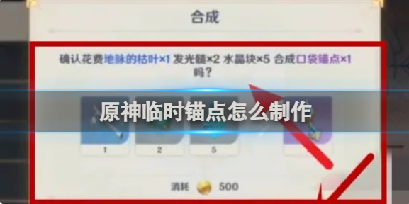 原神临时锚点怎么制作?游戏中的临时锚点想要制作要怎么弄呢,很多玩家找不到制作的材料和制作方法,下面就跟着小编一起来了解一下原神临时锚点制作过程吧。